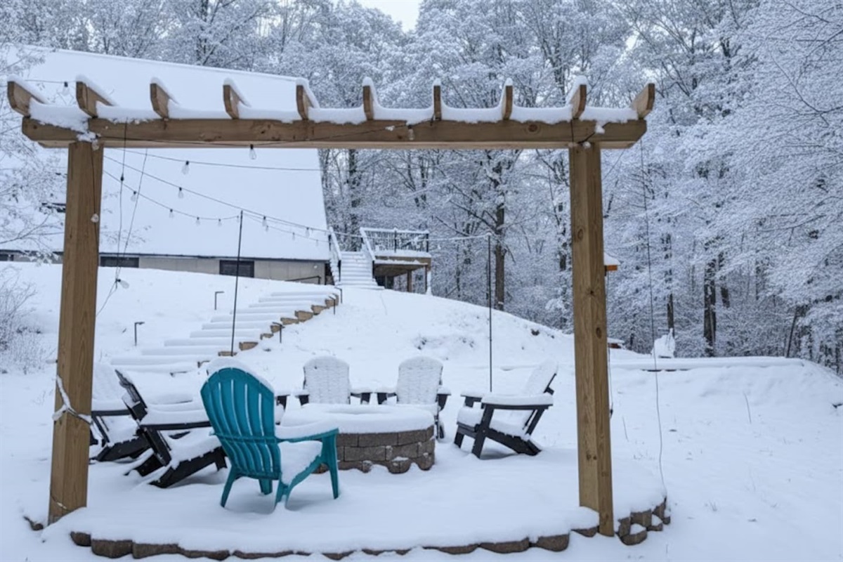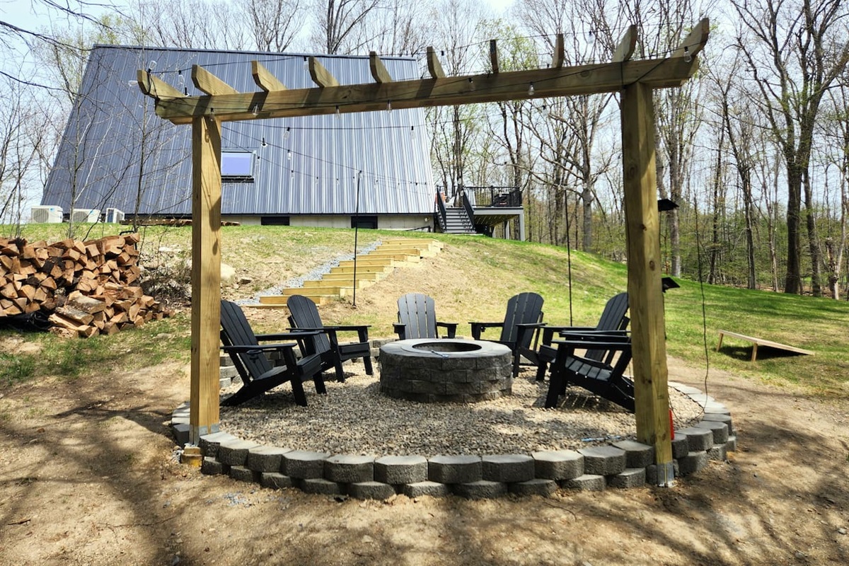 Fire-pit with seating, enjoy smores and listening to the sound of running water